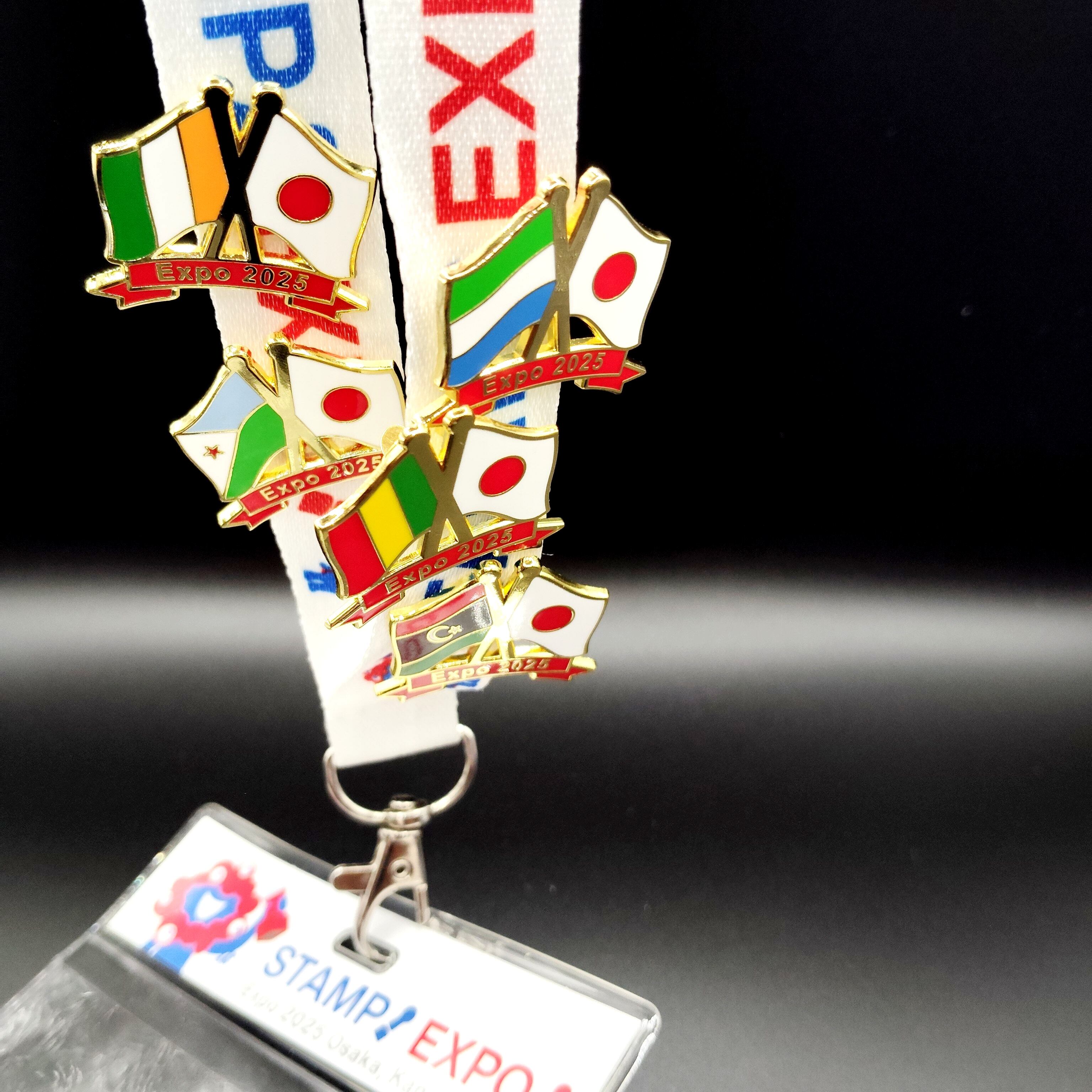 万博期間中、嬉しい特別セール中!!万博へお出かけ前にお好きな国のバッチをつけて出かけよう